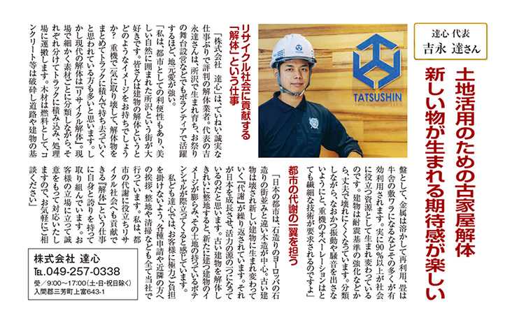 株式会社達心(タツシン) 〒354-0045 埼玉県入間郡三芳町上富643-1